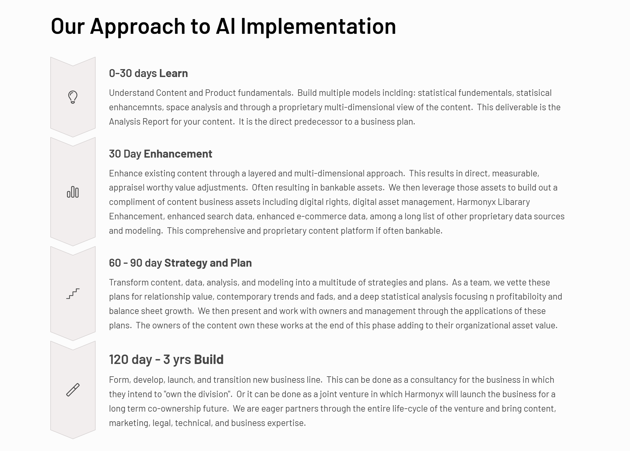 At Harmonyx, we help to uncover the real-world value of AI for Your Organizationhelp. Whether it's enhancing or innovating products, unlocking new growth opportunities, or driving productivity and profits, we pinpoint where AI can have the highest impact on your business.